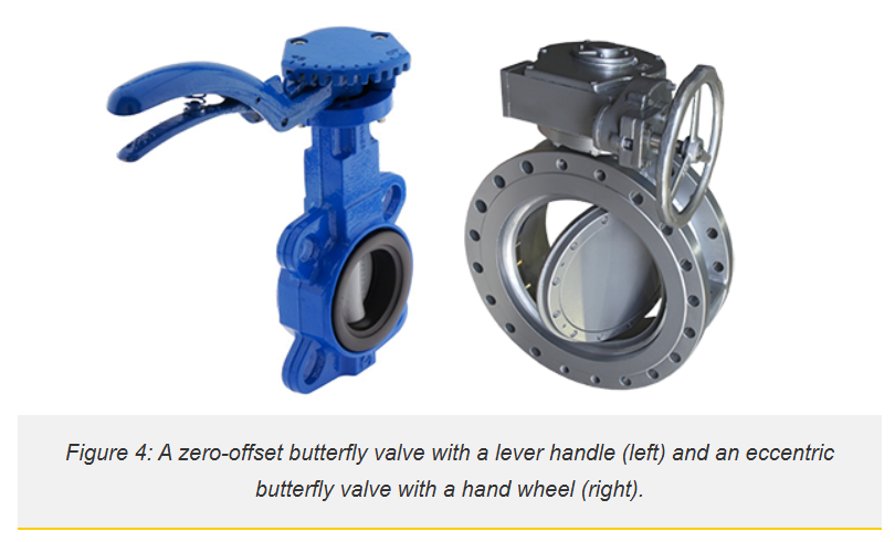 Jenis injap ValvesButterfly Butterfly datang dalam reka bentuk yang berbeza, masing -masing melayani aplikasi tertentu dan julat tekanan. Injap rama -rama boleh dikategorikan berdasarkan reka bentuk penutupan cakera mereka, reka bentuk sambungan, dan kaedah penggerak.DISC Reka bentuk injapbutterfly boleh menjadi sepusat atau eksentrik bergantung kepada lokasi batang yang berkaitan dengan pusat cakera dan sudut permukaan tempat duduk injap. Batang melepasi pusat cakera, dan tempat duduk adalah pinggir diameter di dalam badan injap (Rajah 4 di sebelah kiri). Reka bentuk injap sifar ini dikenali sebagai duduk tahan lama kerana pengedap yang cekap bergantung pada fleksibiliti kerusi getah. Apabila ditutup, cakera pertama kali bersentuhan dengan tempat duduk di sekitar 85 ° semasa putaran 90 °. Injap rama-rama sepusat sesuai untuk julat tekanan rendah.